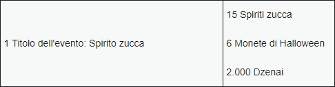 Concludendo un Dungeon di qualsiasi livello di difficoltà al di fuori di Rucco Town (raid compresi), riceverai degli Spiriti zucca all'interno del tuo inventario.